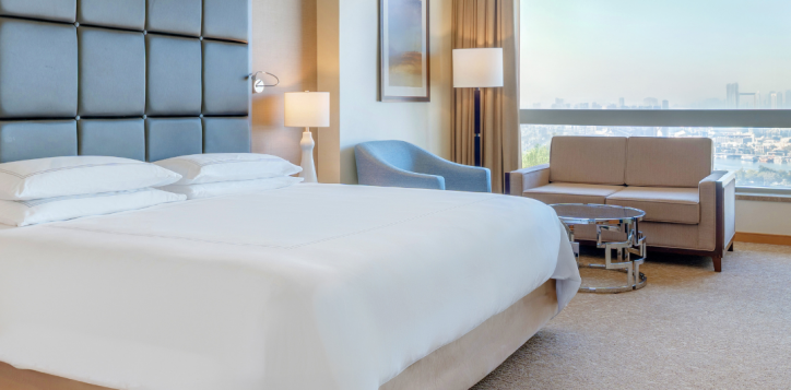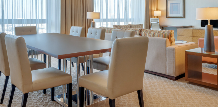Wake up to a delicious international spread of complimentary breakfast buffet every day, and have the choice of a complimentary lunch or dinner at Liwan Restaurant, located at our 5-star hotel, Swissôtel Al Ghurair.
